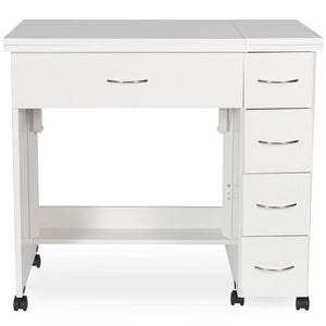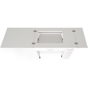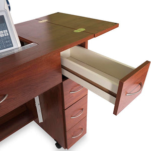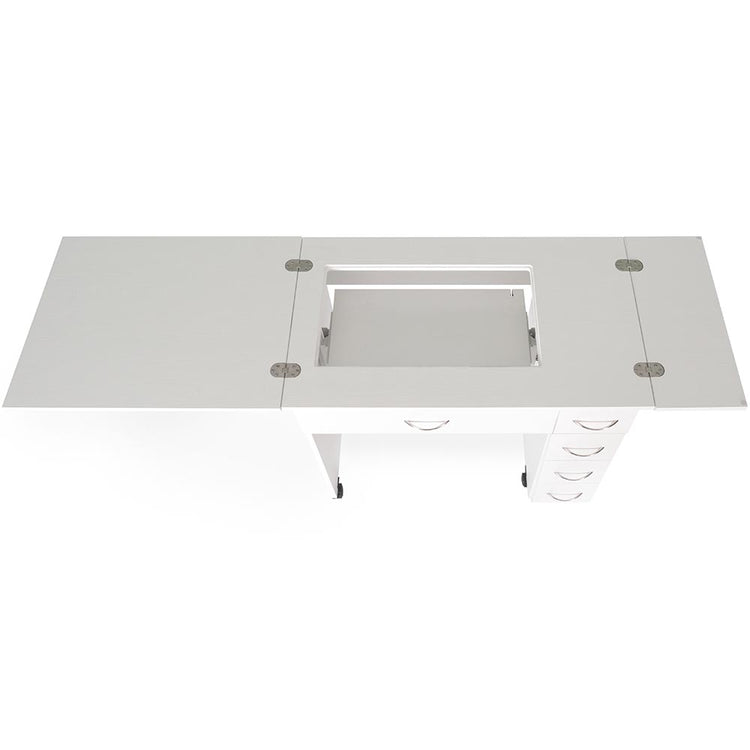 Meet Alice, the newest compact, mid-size sewing cabinet from Arrow. This small but mighty piece of furniture was designed with an ultra home-friendly footprint for your growing sewing studio. It'll expand from a 34" cabinet to a 68" one with its two collapsible leaves. There are four drawers on the right side of the cabinet that are perfect for storing notions and accessories. The Alice will accommodate most mid-size sewing machines with its large opening and three-position hydraulic lift. Pair Alice with a custom acrylic sewing insert to create a flush sewing surface. Whether you have an entire sewing studio or just a corner in a room, the Alice Sewing Cabinet will enhance your sewing experience so you can spend more time doing what you love.