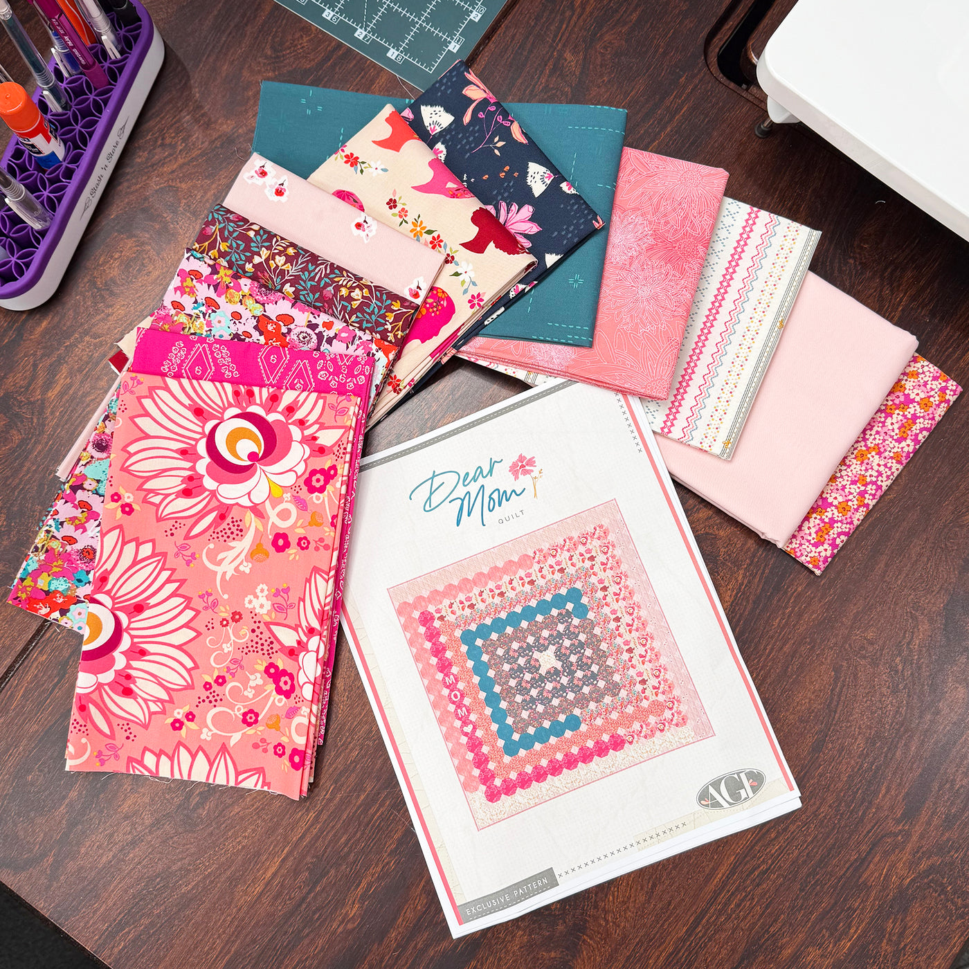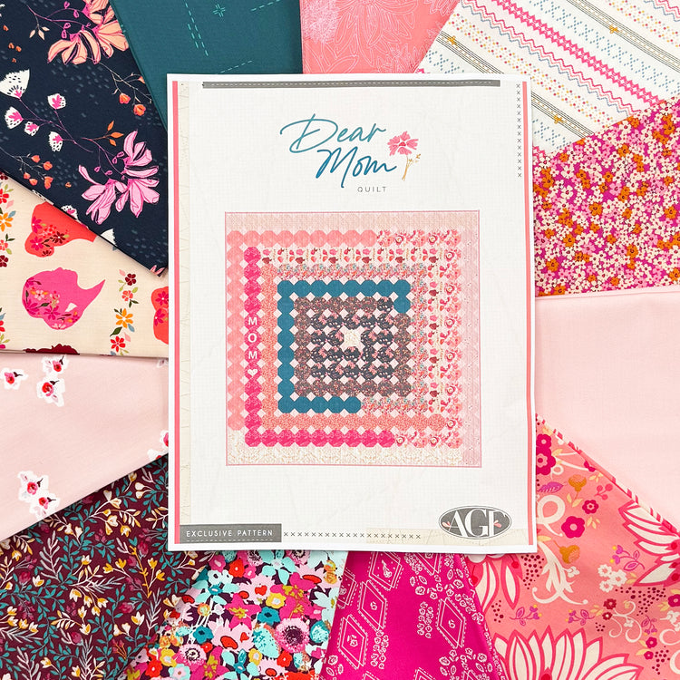 Stitch your heart into every seam with the Dear Mom Quilt Pattern Kit by AGF Studios, a beautiful and heartfelt project designed to celebrate the love and legacy of moms. Finishing at 53.5" square, this quilt is made entirely from a curated mix of Art Gallery Fabrics, thoughtfully pulled from various collections to create a stunning, coordinated palette of florals, geometrics, and warm tones. Designed for confident beginners and beyond, the Dear Mom quilt offers a rewarding sewing experience with its thoughtful layout and charming appliqué accents. You'll be guided through each step to create a patchwork love letter that's as heartfelt as it is beautiful.