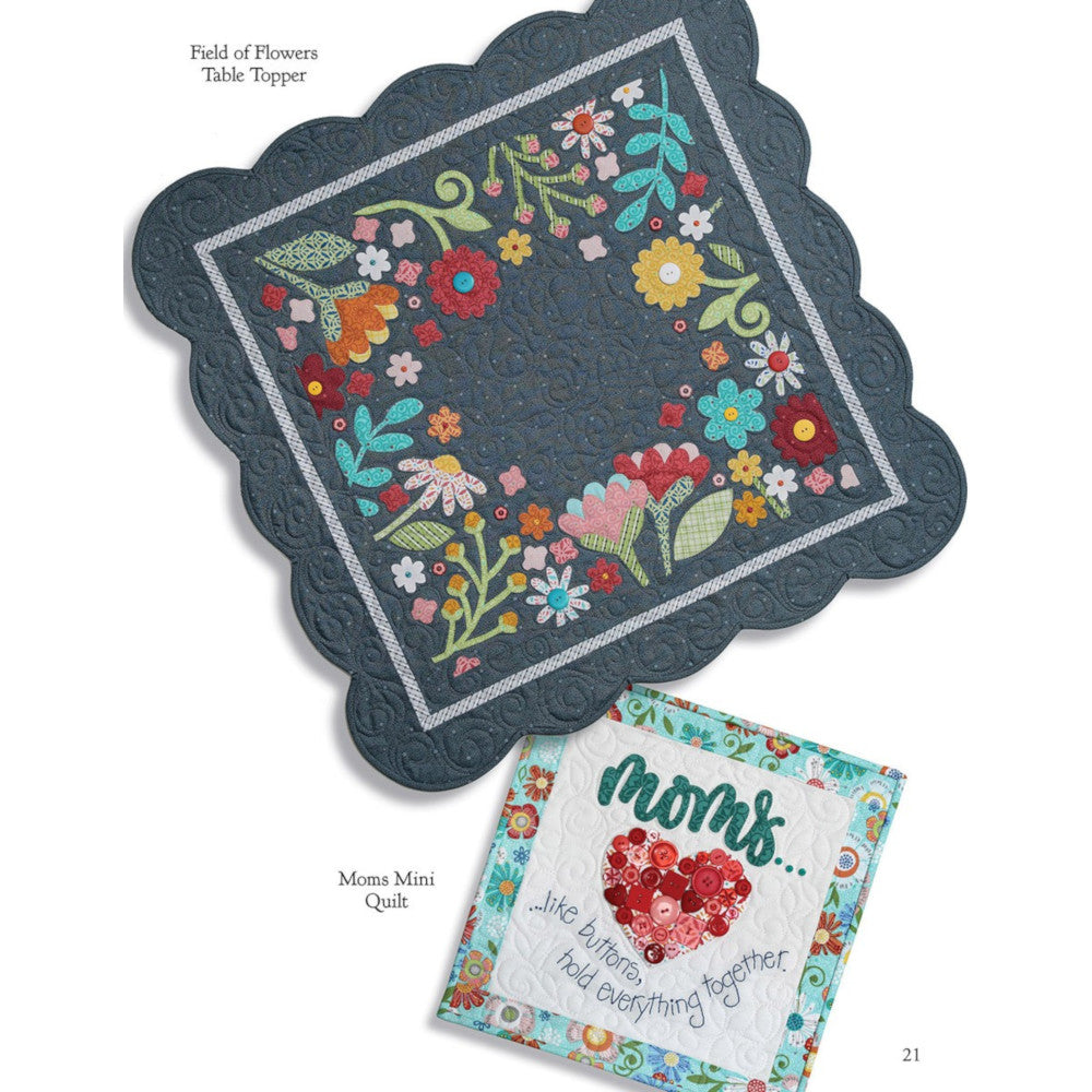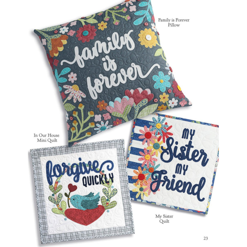 Written by Nancy Halvorsen, the Art to Heart, Home Grown Book celebrates home and family values. The book includes large quilt patterns, mini quilts, pillows, table toppers, tea towels, aprons, and pot holders. The Home Grown Book has 48 fun, filled pages of projects that will keep you busy for months to come.