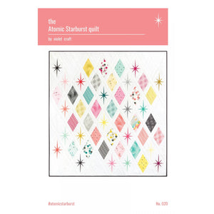 Atomic Starburst Quilt pattern by Violet Craft. This quilt is laid out in a modern diamond pattern with mid-century inspired stars interspersed throughout. This ten square friendly quilt finishes to 62in by 66in.