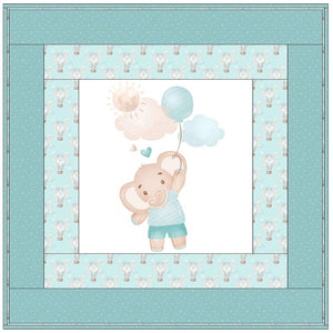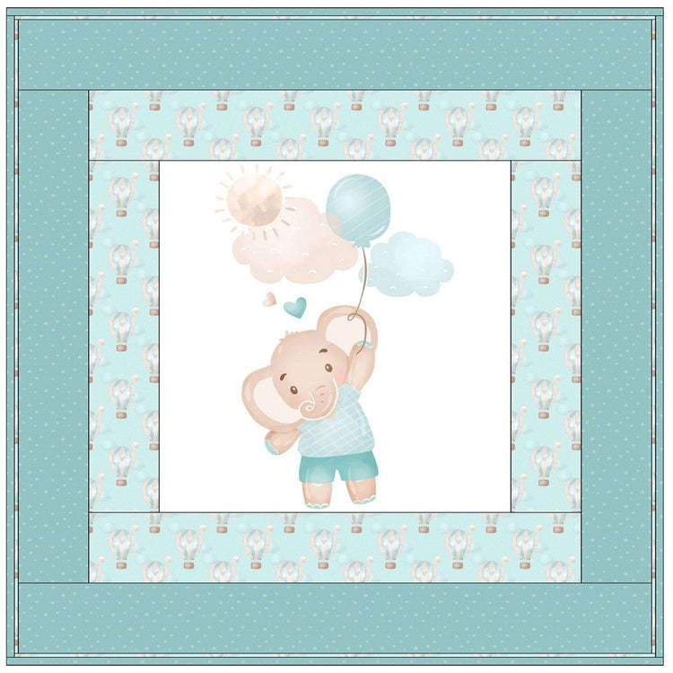 The Baby Boy Elephant in the Clouds Wall Hanging includes everything that you need to make the quilt - the instructions and a total of 3 1/2 yards of fabric and a 23" panel. It has two borders and is finished with a flange binding. Batting is sold separately. The finished size of this quilt is 42" x 42".