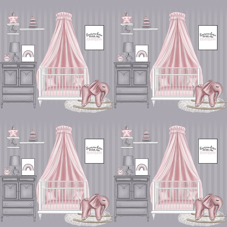 The Gray Baby Girl Nursery Fabric is part of the Baby Girl Fabric Collection printed by Sew Creative Fabrics. Digitally Printed on 100% cotton.