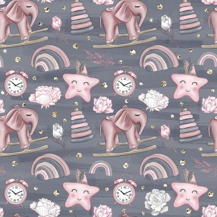 The Gray Baby Girl Toys Fabric is part of the Baby Girl Fabric Collection printed by Sew Creative Fabrics. Digitally Printed on 100% cotton.