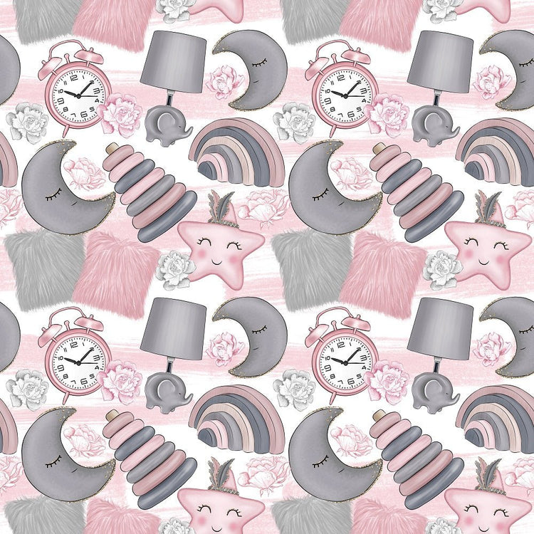 The White Baby Girl Toys Fabric is part of the Baby Girl Fabric Collection printed by Sew Creative Fabrics. Digitally Printed on 100% cotton.