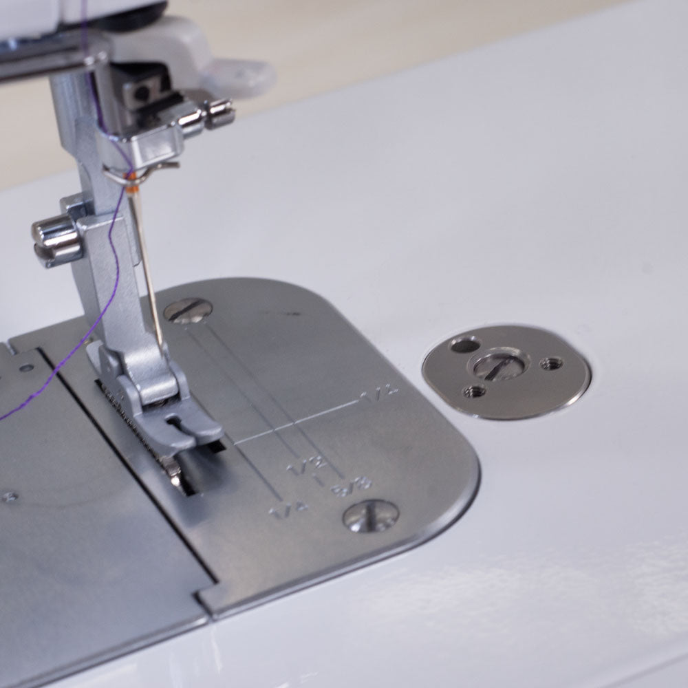 The side-loading bobbin case is easy to access and remove, making bobbin changes quick and simple, and with the large L-style bobbins, you won't have to stop nearly as often for pesky bobbin changes. A built-in thread-cutting device also holds an appropriate length of thread and eliminates manually pulling the thread up.
