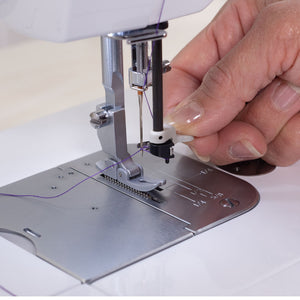 An automatic threader takes the guesswork out of threading your needle. In a few effortless movements, your needle will be threaded and ready to sew!