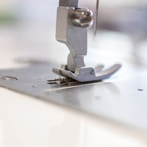 The Accomplish 2 has multiple systems to ensure you get a smooth, consistent feed on any fabric type. This machine has four adjustment levels for your feed dogs. For medium to heavyweight fabrics, you will want to have the feed dogs all the way up (green line); for lightweight materials, you can lower them one notch (blue line). To engage the pin feeding system for velvets, you will need the third option (red line), and to completely disengage the feed dogs, flip the lever all the way to the left (black line). Each one of these options ensures you get the best feed possible and gives you professional-looking stitches.