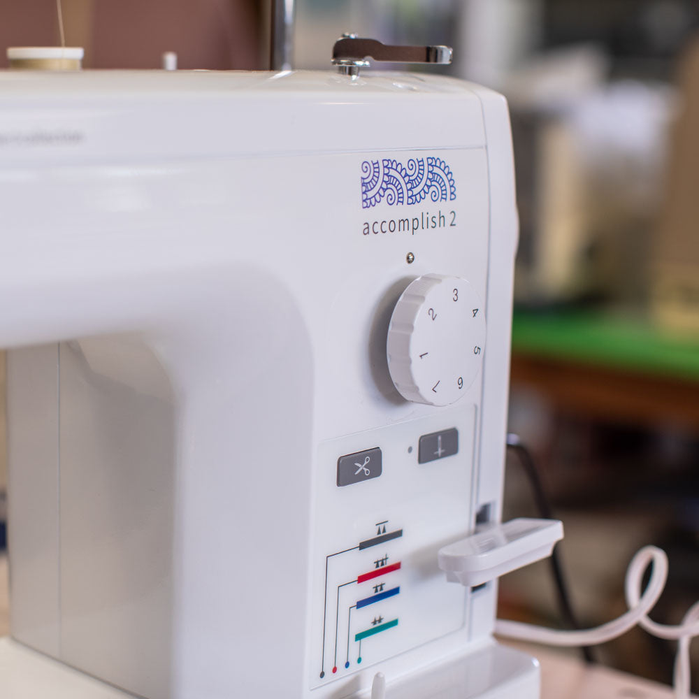 The Accomplish 2 will easily power through multiple layers at a time. With its powerful motor, you can easily sew through various layers in a quilt, jacket, denim, or even vinyl without any struggle. Since the Accomplish is a straight stitch machine with only a single needle hole, it has a stronger penetration to go through multiple layers.
