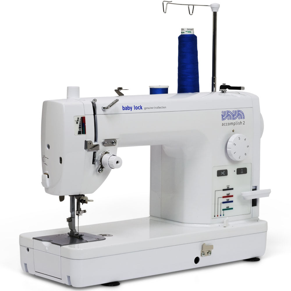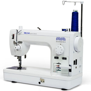Fulfill all your sewing desires with Baby Lock's BL530B Accomplish 2 Sewing Machine. This durable machine was designed with speed, sewing up to 1,500 stitches per minute. Sew through multiple layers of fabric like upholstery, costuming, and denim effortlessly. Part of Babylock's Genuine Collection, this semi-industrial, straight-stitch machine offers a large workspace, hands-free presser foot adjustment, knee lifter, thread cutter, needle threader, adjustable feed dogs, telescoping thread stand, convenient push buttons, an extension table, and so much more! The Baby Lock BL530B Accomplish 2 Sewing Machine is the perfect companion to accomplish your projects with confidence; sew everything from quilts to crafts and even bulky upholstery.