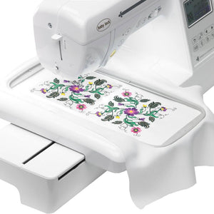 Included with the Babylock Accord Sewing & Embroidery Machine is a Multi-Position Embroidery Hoop. This allows you to embroider larger designs without having to inconveniently rehoop your fabric. Patterns with a maximum size of 5" by 12" can be embroidered if divided into sections to be used in the available positions of the hoop, with each section a maximum of 7" by 5".