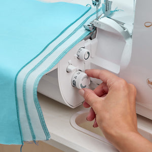 Easily adjust the length of your stitches using the dial conveniently located just to the left of the front cover. The dial displays two stitch-length ranges, from 0.75 for the shortest stitch to 4 for the longest. Implyng one range for standard sewing and one for rolled edging or narrow seaming. This dial includes an Automatic Rolled Hem setting that will retract the built-in stitch width finger for a rolled hem finish.