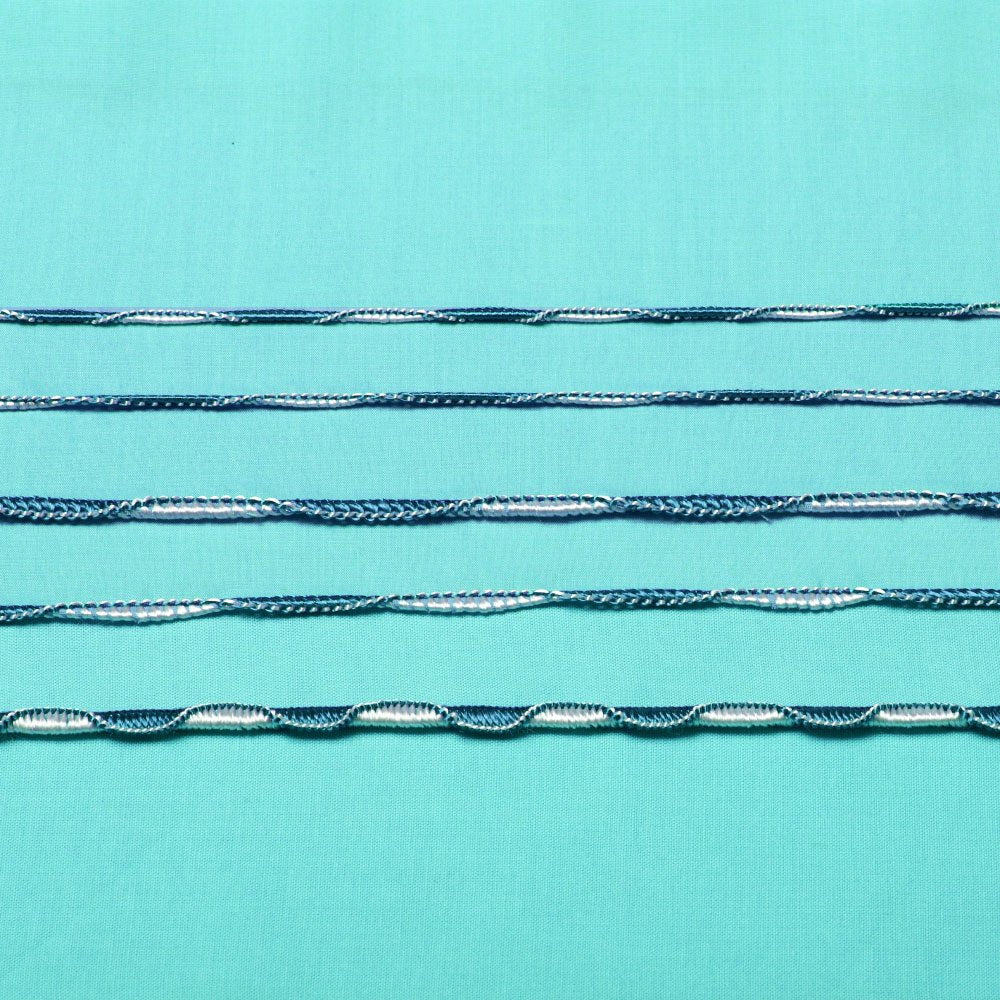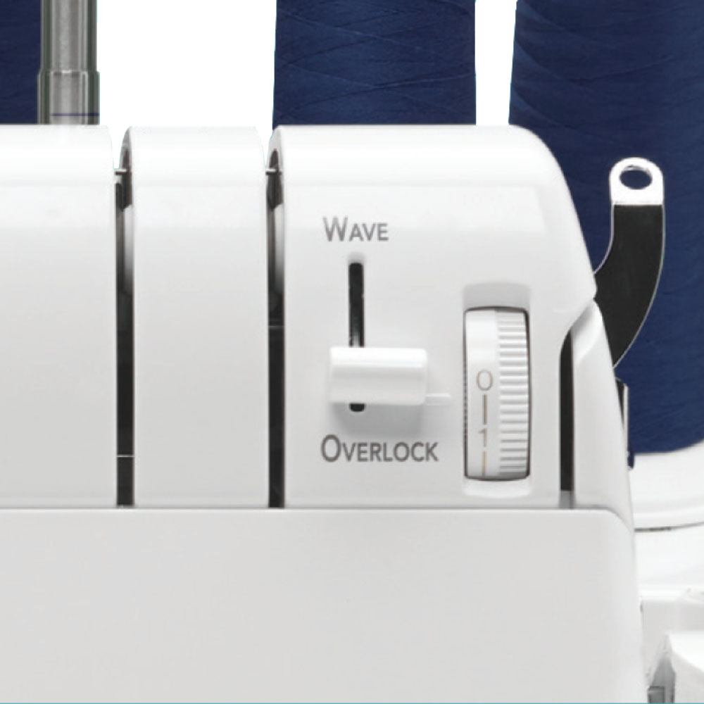 The Wave Stitch opens your world to more decorative stitches for more creativity. This stitch provides a decorative "wavy" edging on fabric. (not to be confused with the "lettuce edge") Try different thread colors and stitch widths to serge a one-of-a-kind creation easily. When combining decorative threads for the Wave stitch, please test on a sample of the fabric you will be sewing on before applying the Wave stitch.