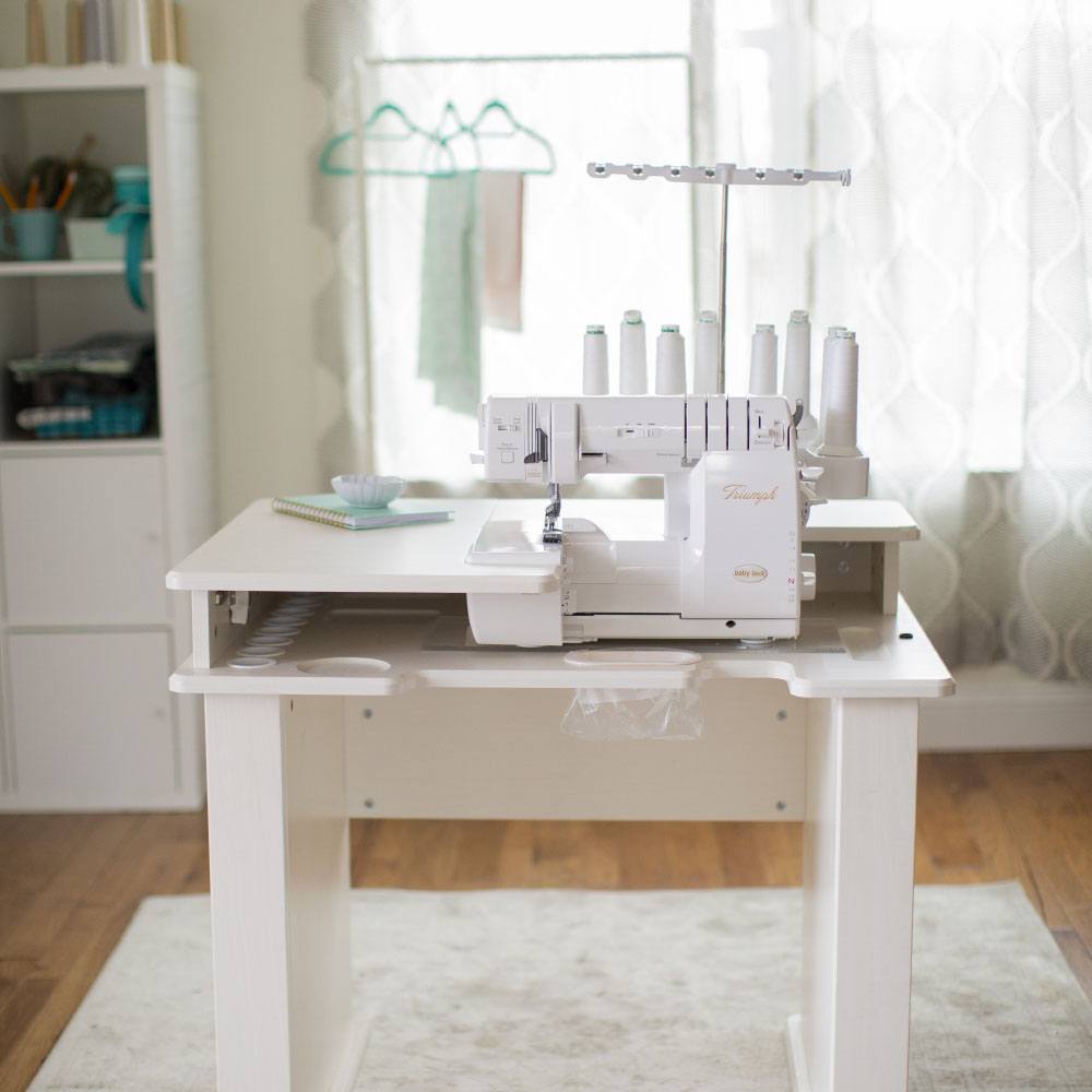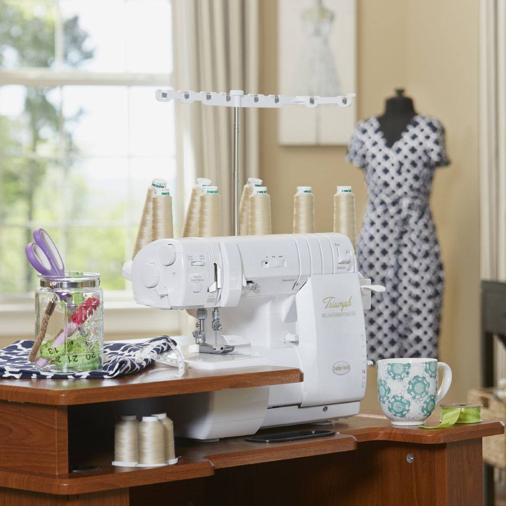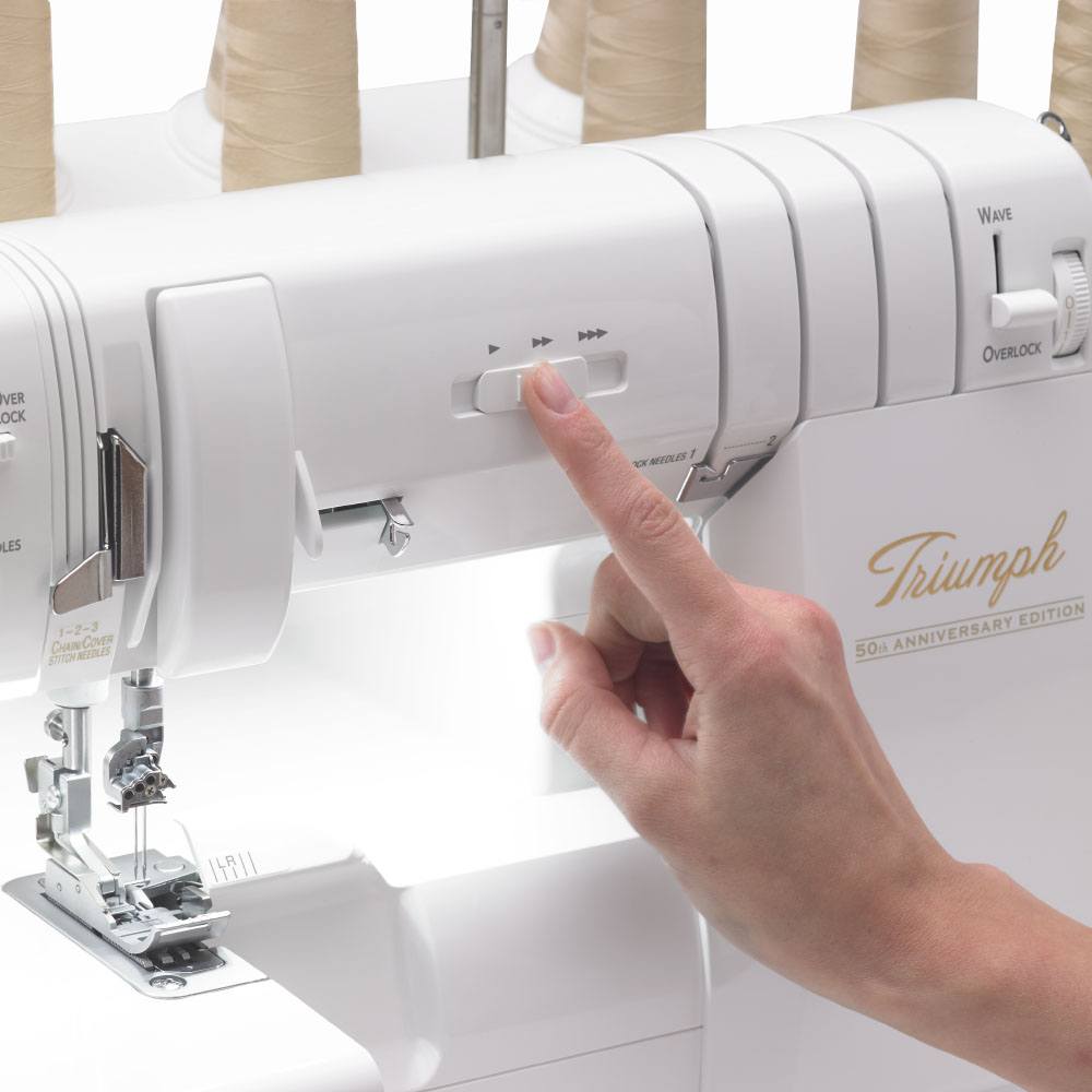 With its extra-high presser foot, Advanced Knife Driving, and One-Way Clutch System, your Triumph has a larger cutting bite that cuts thicker fabric with ease and increased visibility. Unlike regular sergers, the Triumph can easily cut through thick fleece, wool, and multiple layers of denim.