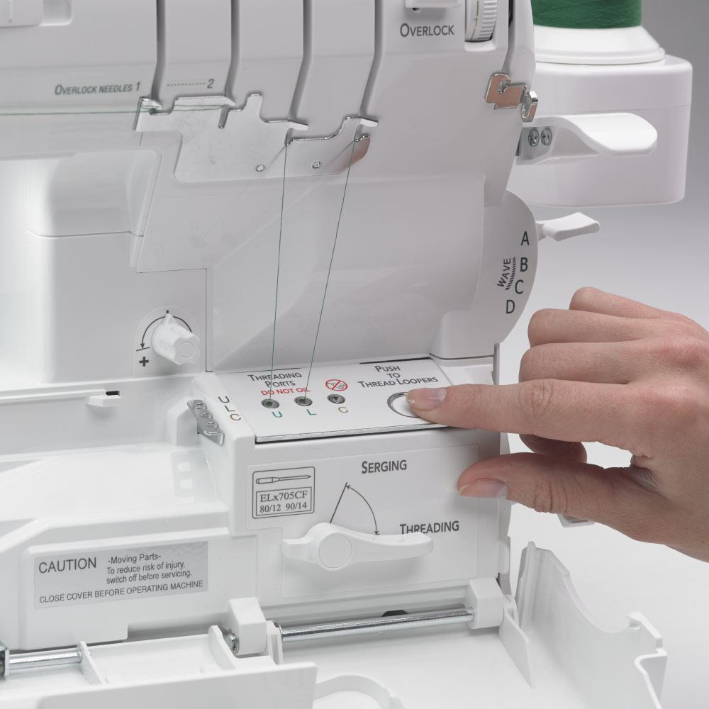 There's no exposed thread, no thread guides, and you can thread in any order! Tubular loopers eliminate threading mistakes and protect the thread for more serging freedom.