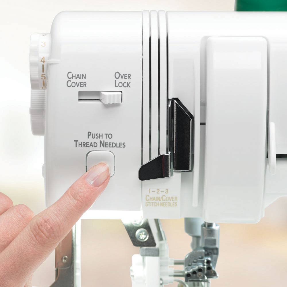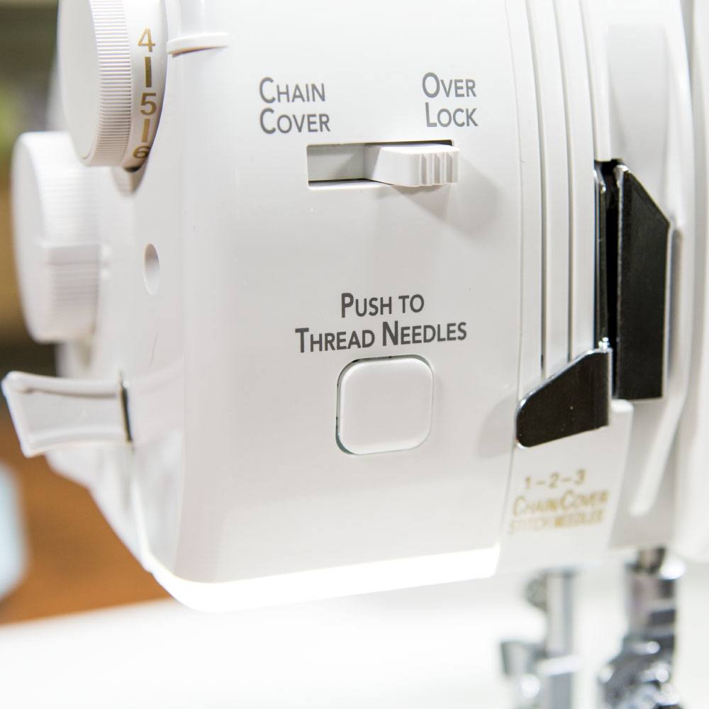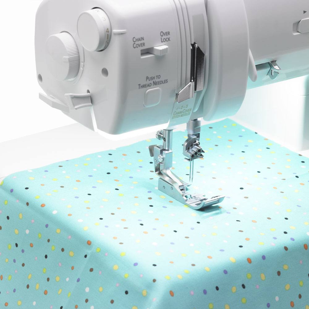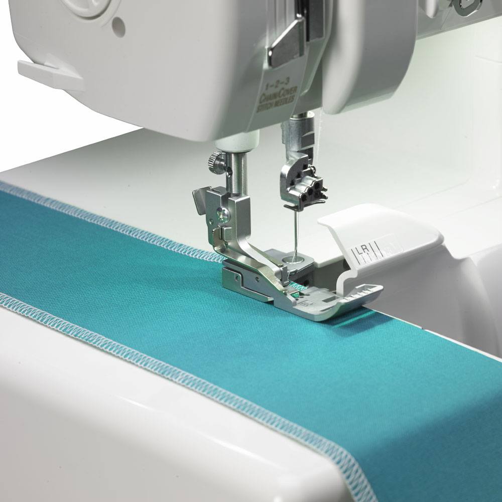 Functions include chain, cover, and triple cover stitches. All three cover needles are controlled by one tension dial, so you can save time with one simple adjustment.