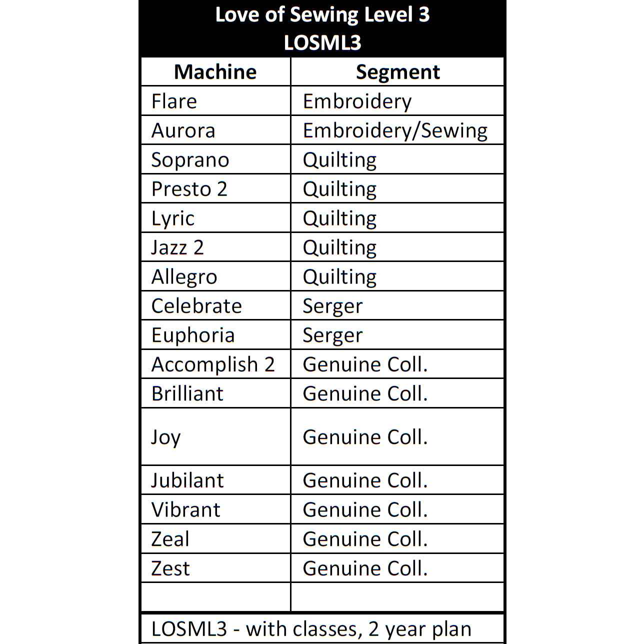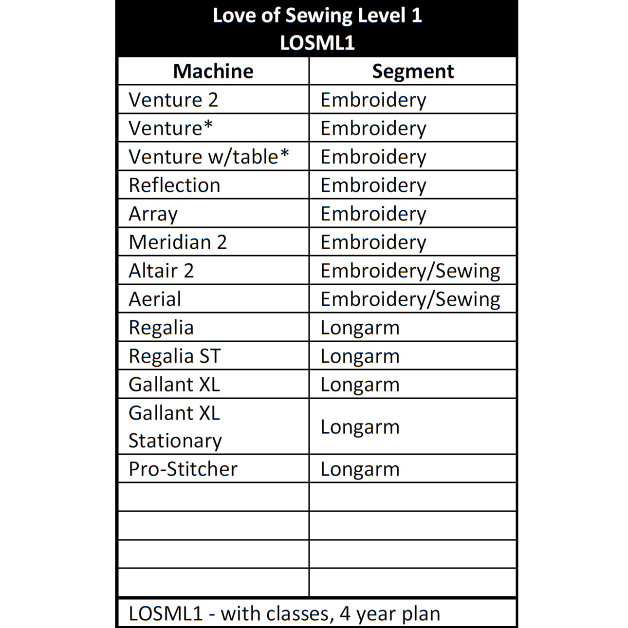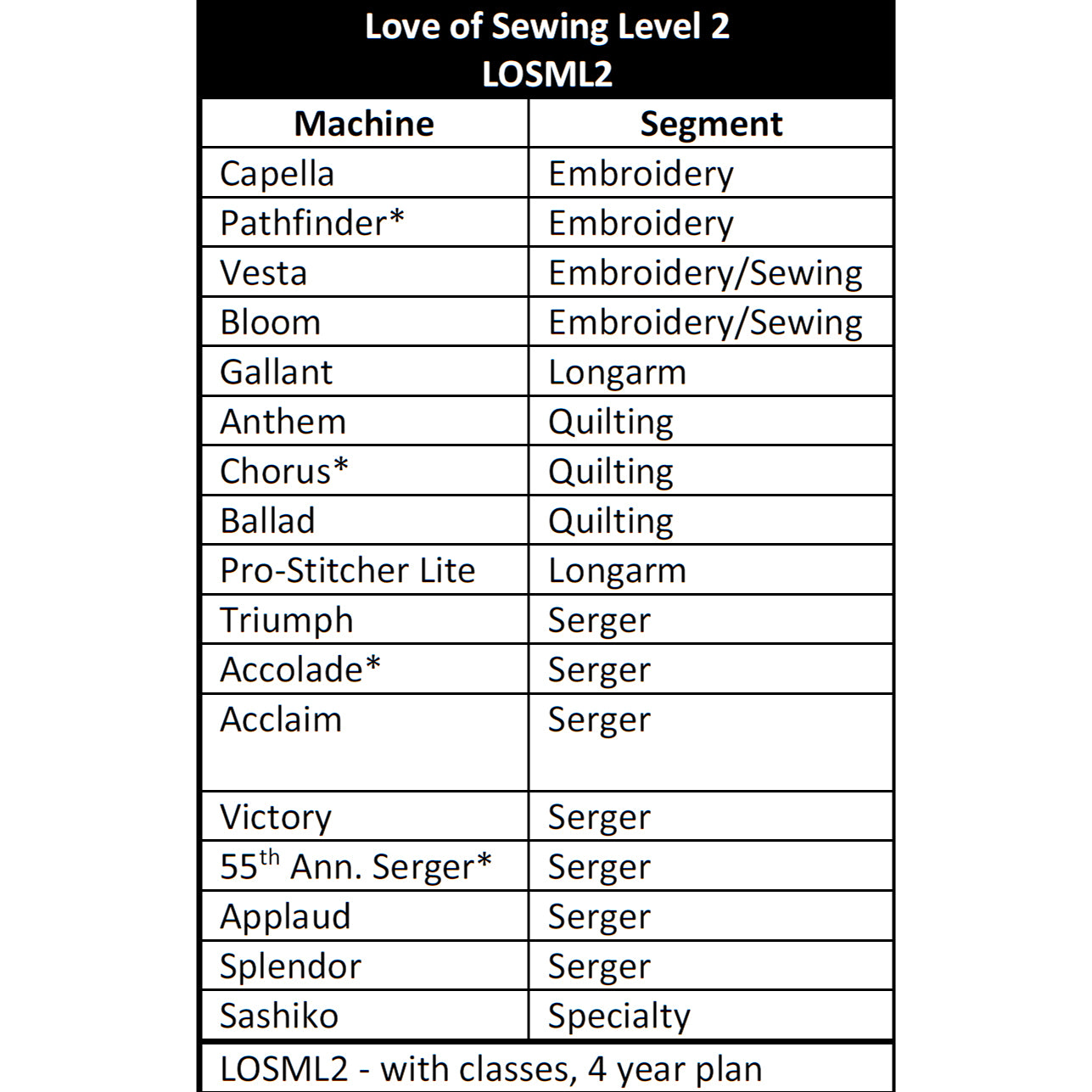 Please note the Love of Sewing Membership Level is dependent on your machine. Machines marked with an * are retired but eligible for Love of Sewing Memberships for up to two years after their retirement date. If you have already purchased a Baby Lock machine and are thinking of adding a Love of Sewing Membership, your machine must have been purchased within the last 12 months.