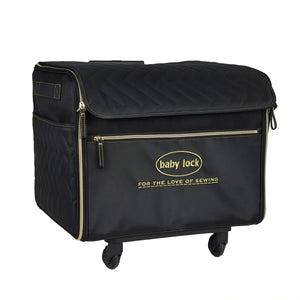 This small, quilted, 4-wheel Serger Trolley Bag makes it easy to transport your serger from home to classes and guild meetings. With its four multidirectional wheels, this bag is easy to pull. The sides are made of durable 600 denier polyester fabric reinforced with padding to help protect your machine. Please note that some assembly is required with this bag. Baby Lock's Small Quilted Serger Trolley is meant for ground travel; it has not been approved for airline use.