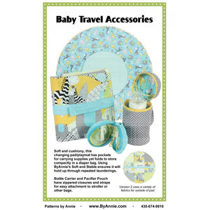 These adorable, easy to make Baby Travel Accessories would make the perfect gift for a baby shower. Included with the Baby Travel Accessories are instructions and recommended materials to create a changing pad/playmat with pockets, bottle carrier, and a pacifier pouch. Add mesh fabric and a swivel hook to the bottle carrier and pacifier pouch to clip them on to the diaper bag or car seat for when on the go.
