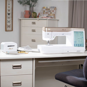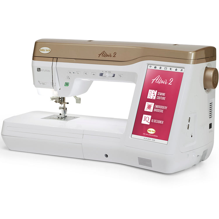 Let your creativity soar with Baby Lock's Altair 2 Embroidery and Sewing Machine. This machine can do it all; you can embroider, quilt, craft, and more on the Altair 2. IQ Technology is integrated into the Altair, allowing you to wirelessly transfer images to your machine from your phone or tablet using the IQ Intuition Positioning App. You get a 9-1/2" by 14" embroidery field, 534 built-in designs, 774 stitch options, an 11-1/4" workspace, a 10.1" LCD touch screen, a needle beam, and much more. Besides all the features in the Altair 2, it also comes with a host of included accessories like 14 presser feet, multiple hoops, a knee lift, and 60 days of free SEWed online classes. Whether you are a professional or looking to upgrade your machine, Baby Lock's Altair 2 can do it all. With the integrated technology in the Altair 2, you will enjoy all the sewing, quilting, and embroidery projects you can accomplish.