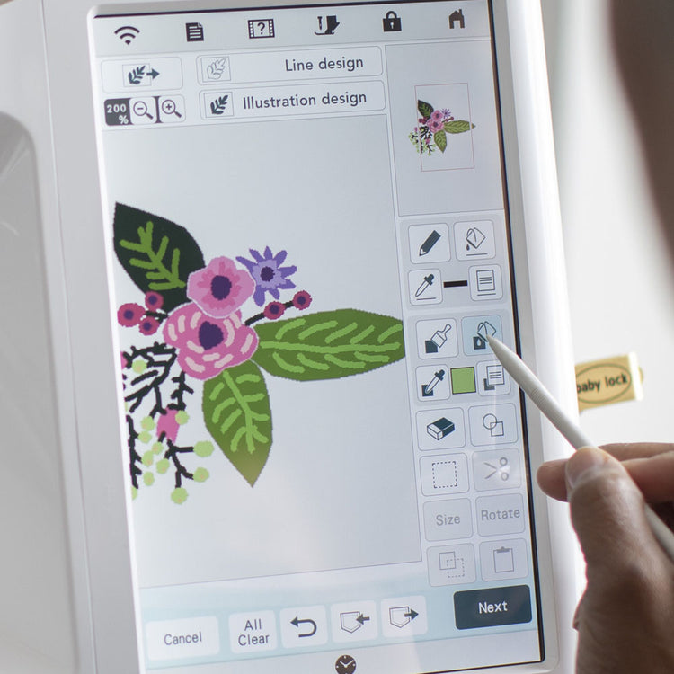 With Baby Lock's new Palette 11 Embroidery Software, you'll be able to create and edit embroidery designs easier than ever before. This advanced software takes your machine embroidery capabilities to the next level. You'll enjoy premium auto-digitizing, easy design editing, new patterns, and more. The Palette 11 offers improved functionality that makes every step of digitizing easier, and the new interface makes it easier than ever to use.