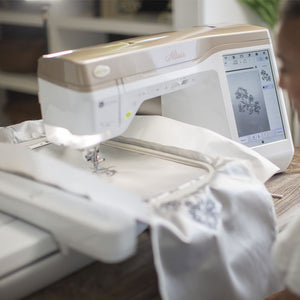 Let your creativity soar with Baby Lock's Altair Embroidery and Sewing Machine. This machine can do it all; you can embroider, quilt, craft, and more on the Altair. Integrated into the Altair is IQ Technology, which will allow you to wirelessly transfer images to your machine from your phone or tablet using the IQ Intuition Positioning App. You get a 9-1/2" by 14" embroidery field, 494 built-in designs, 771 stitch options, an 11-1/4" workspace, a 10.1 LCD touch screen, a needle beam, and much more. With all the unique features packed into Babylock's Altair Embroidery and Sewing Machine, you will never run out of projects. To check out the Altair in action, watch this short YouTube video.