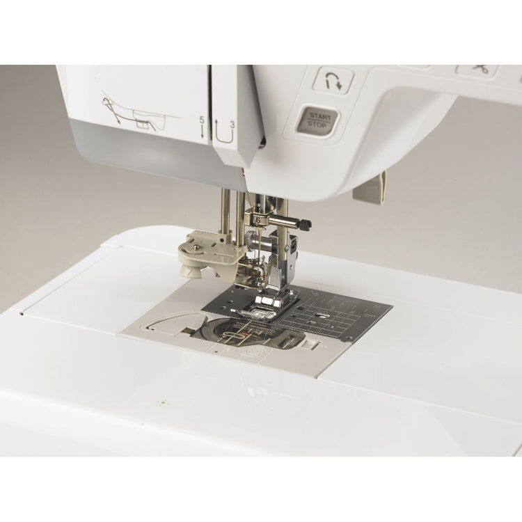 5 Built-in alphabets, Maximum utility stitch width: 7mm, Stitch length 0.0mm - 5.0mm, Digital Dual-Feed System ensures all layers feed evenly, NeverMiss™ needle threader, Automatic thread cutter, Independent bobbin winder motor and Quick-Set top-loading bobbin, Advanced Pivoting Feature, Automatic Fabric Sensor System adjusts presser foot pressure and tension to deliver perfect stitch, Ergonomic hands-free presser foot lift with extra high setting 10mm automatic and 13mm manual, 11.25" Workspace to the right of the needle, Sewing speed up to 1,050 SPM, Automatic drop feed.