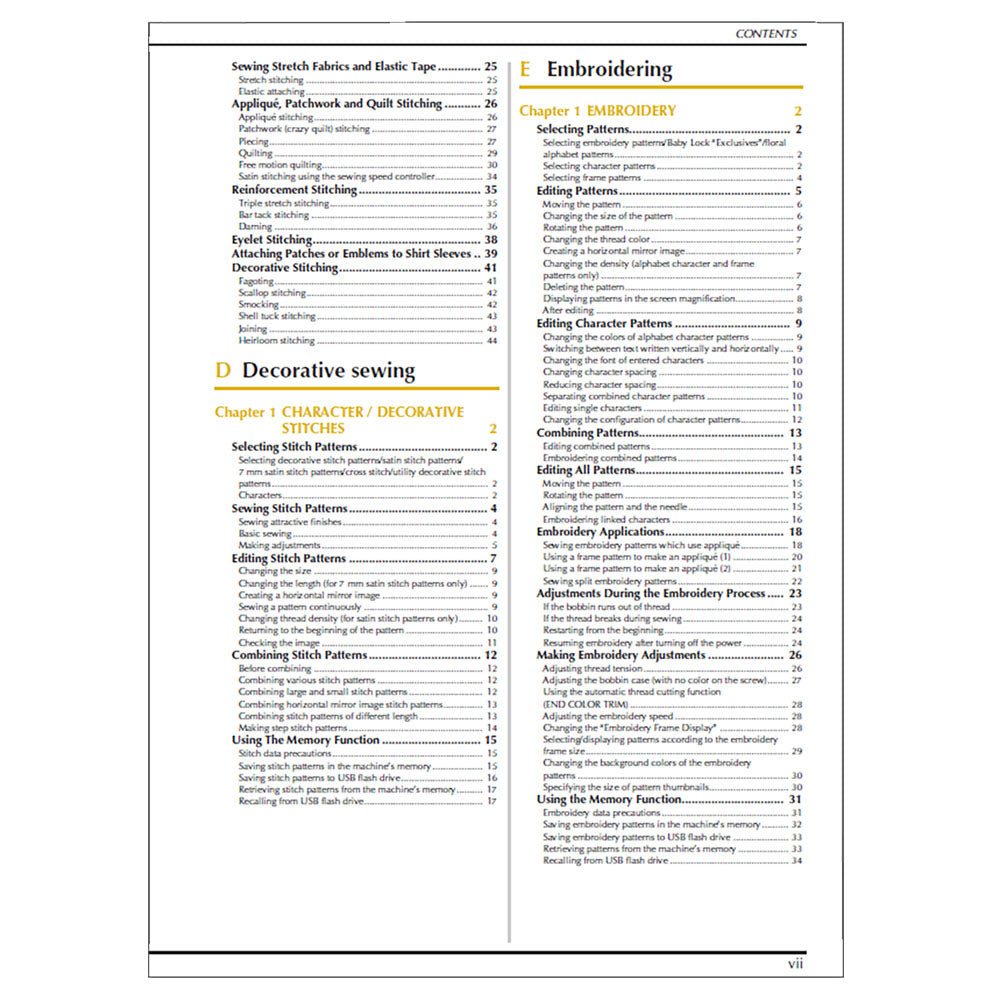 Babylock BLMAV Aventura Sewing Machine Instruction Manual (Model BLMAV Aventura) - 184 Pages. Lost your sewing machine's manual? We've got you covered! This instruction manual is the ultimate guide to unlock the full potential of your Babylock BLMAV Aventura. No more confusion or frustration—just clear, concise instructions right at your fingertips. What's inside? Everything you need to know from setting up to mastering your sewing machine and all its features.