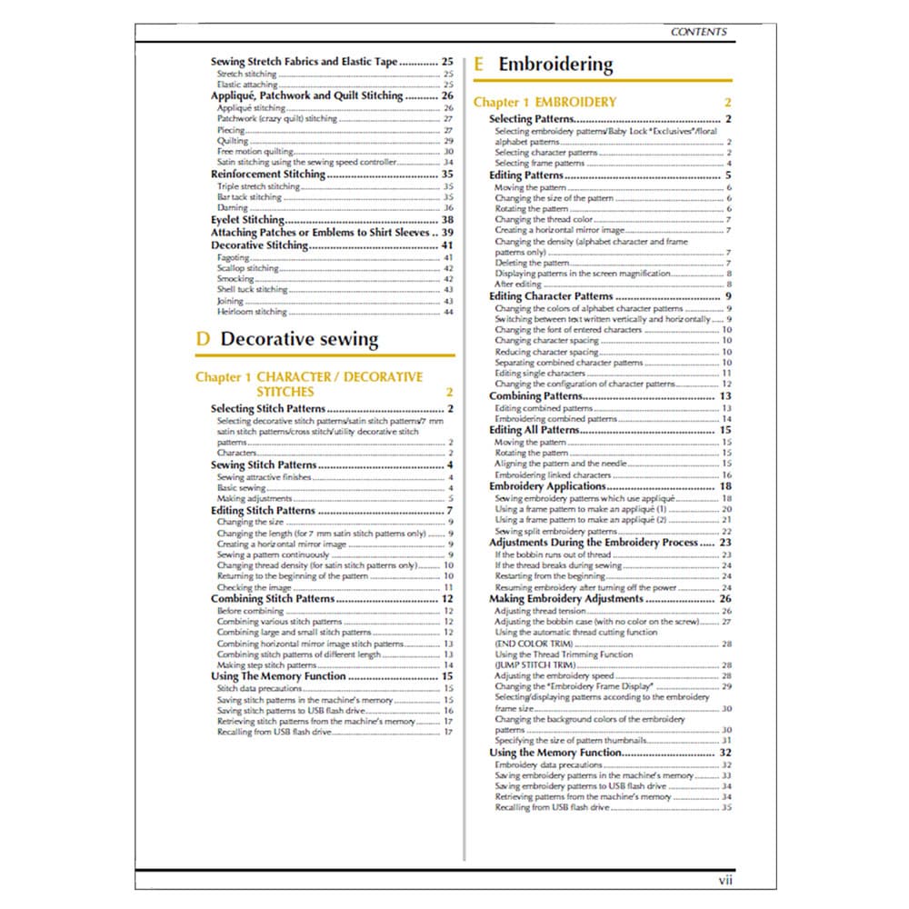 Babylock BLMAV2 Aventura II Instruction Manual Details