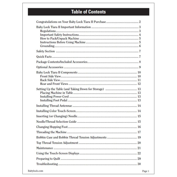 Instruction Manual, Babylock BLTR16-2 Tiara II Details