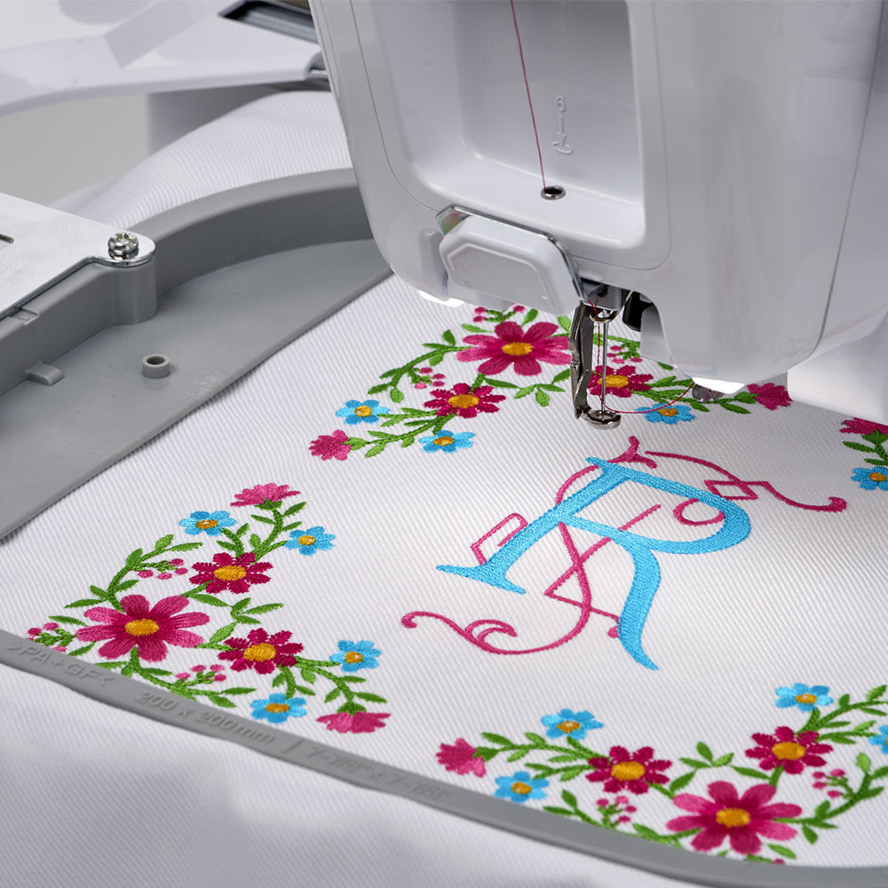 You can use the optional embroidery border hoop (sold separately) to quickly embroider continuous designs by guiding the fabric through the hoop, resulting in accuracy and swift rehooping. Embroider a 4" x 7" area with each rehooping.
