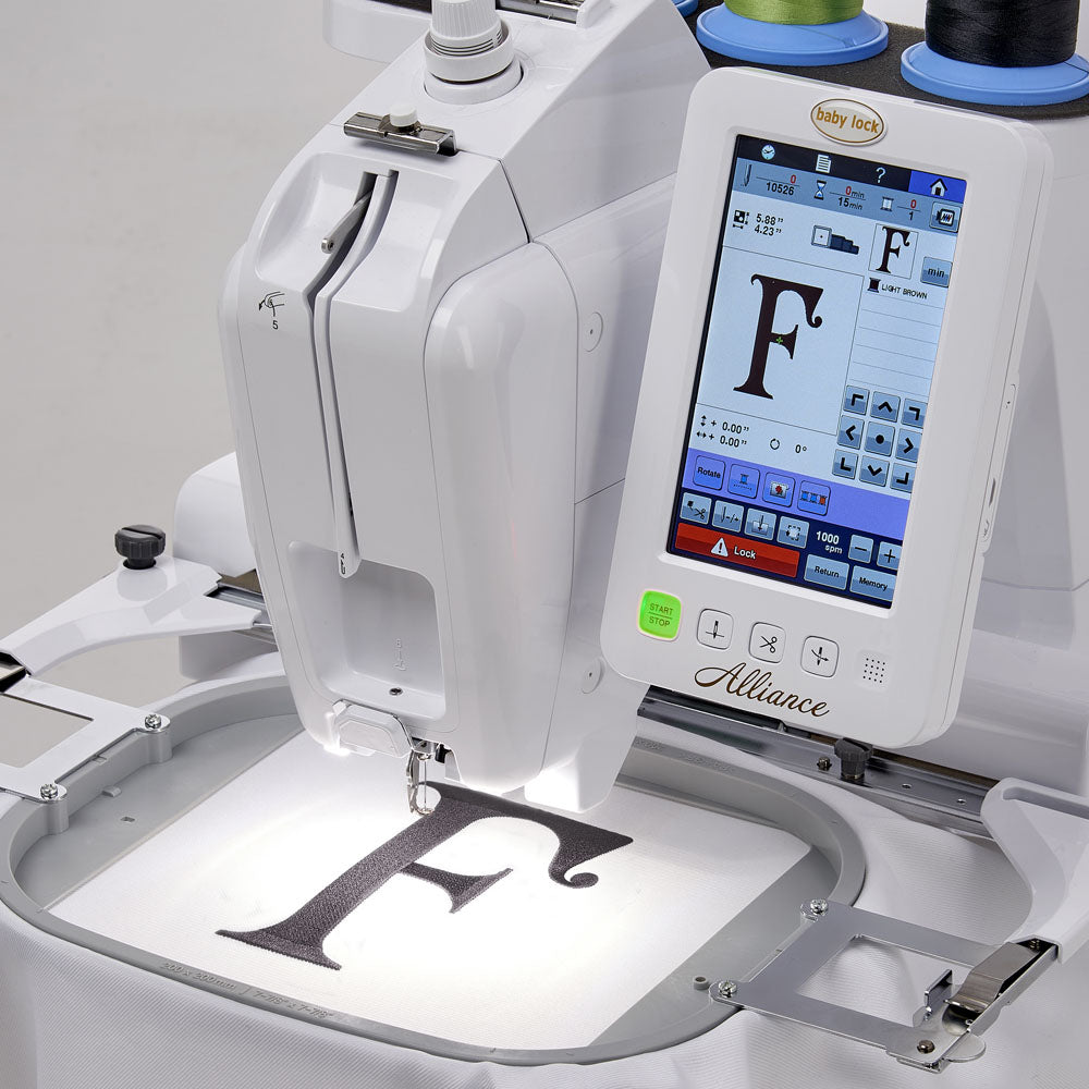 A wide range of fonts are available so that you can put your special touch on each project. The Alliance features Greek Letters, a Large Floral Alphabet, Babylock-exclusive fonts, and much more.