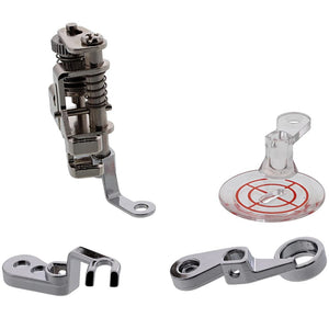 This Free-Motion Quilting Foot Set includes the main shank and four interchangeable soles. This kit will meet all your quilting needs, such as straight lines on the fabric, quilting on uneven thickness, echo quilting effects, and even ruler work.