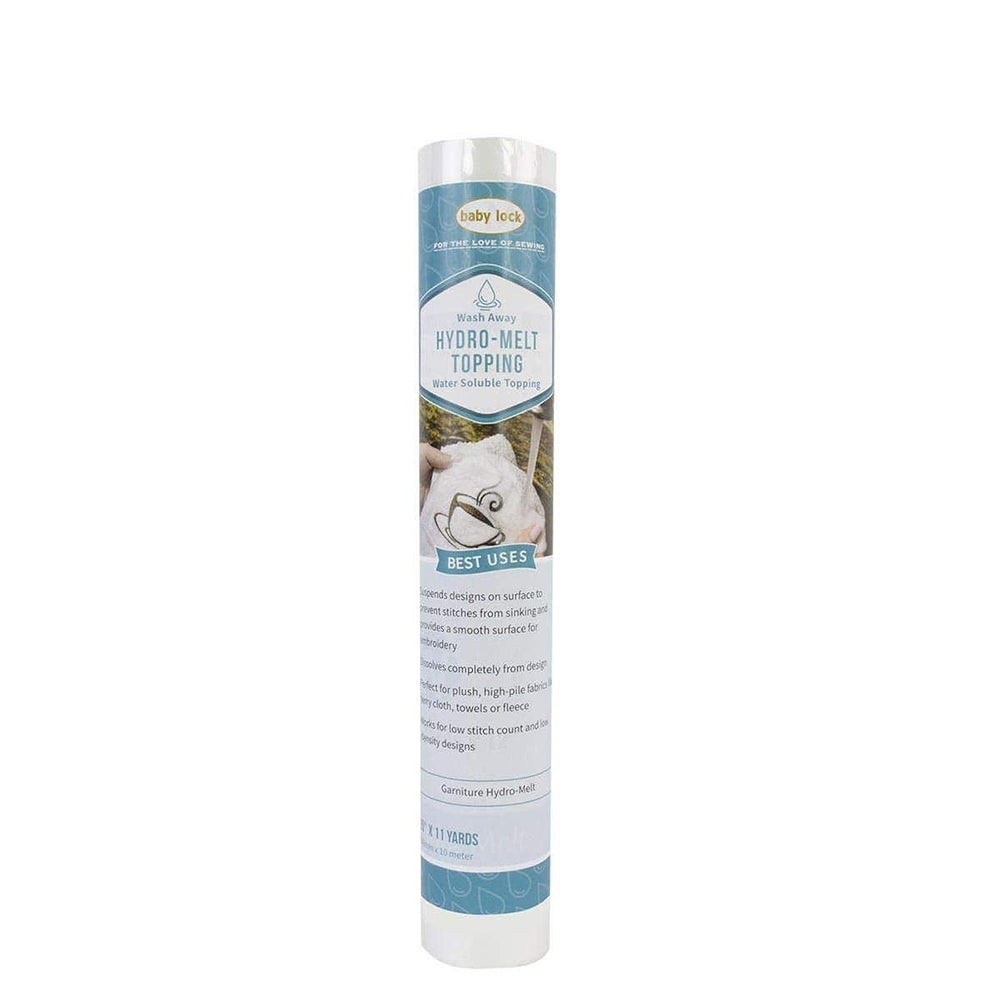 Babylock Hydro Melt is ideal for projects that use high pile fabrics such as fleece, terry cloth, and knits. It creates a smooth embroidery surface so stitches won't sink into your material, giving your work a crisp definition and detail. Hydro Melt dissolves in water, so you should only use it on projects that can be wet without staining. You can easily remove the stabilizer with a damp cloth or sponge. Avoid direct contact with the Hydro Melt when using a steamer or iron.