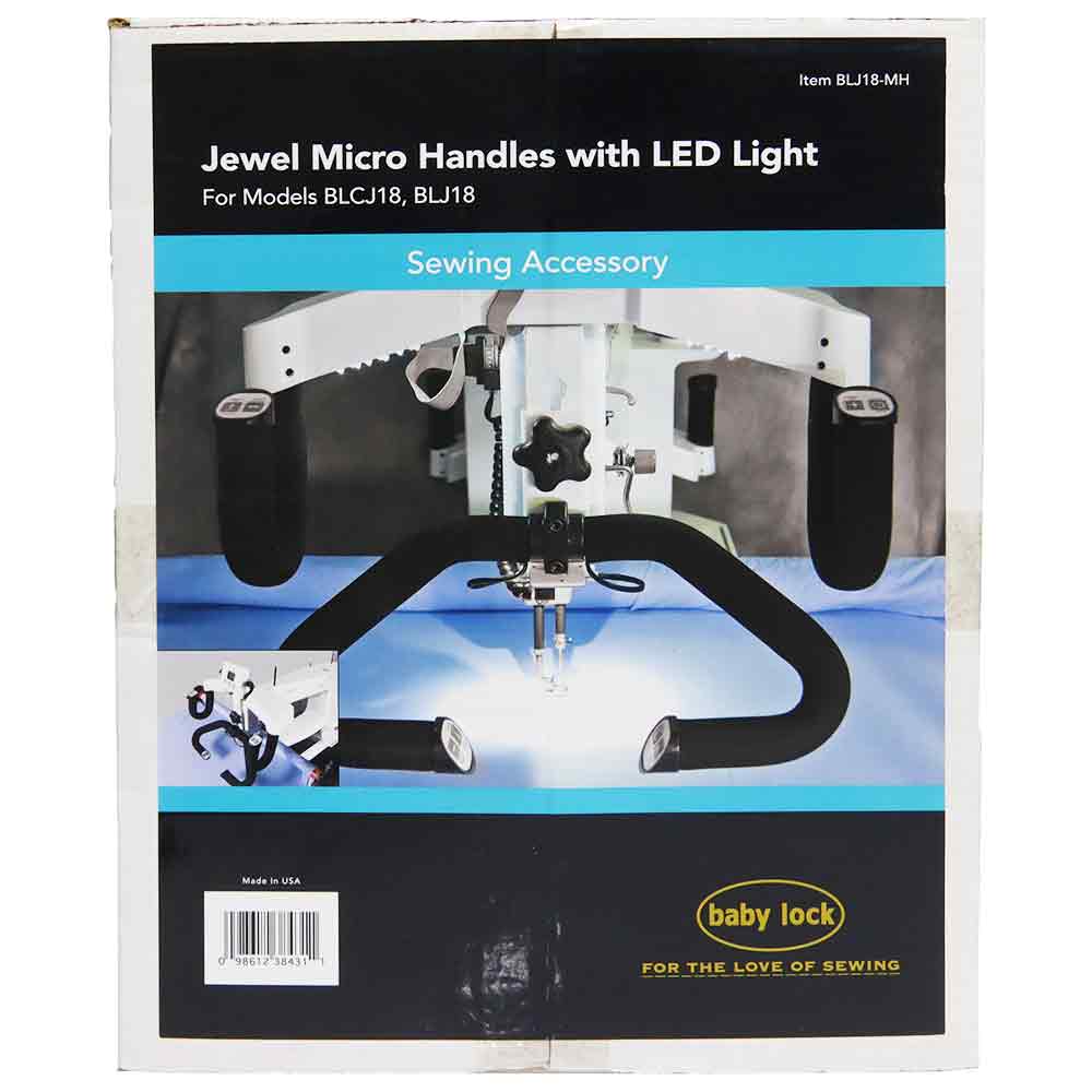 The Micro Handles are an excellent accessory for micro-stippling and close-up work. These comfort-grip handles allow you to work with precision and ease with fully integrated, built-in buttons. They are adjustable front to back and up and down, so you can place the handles as close to the needle as you wish. Plus, illuminate all of your detailed stitching with the additional LED light.