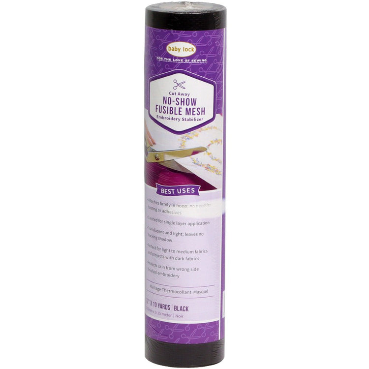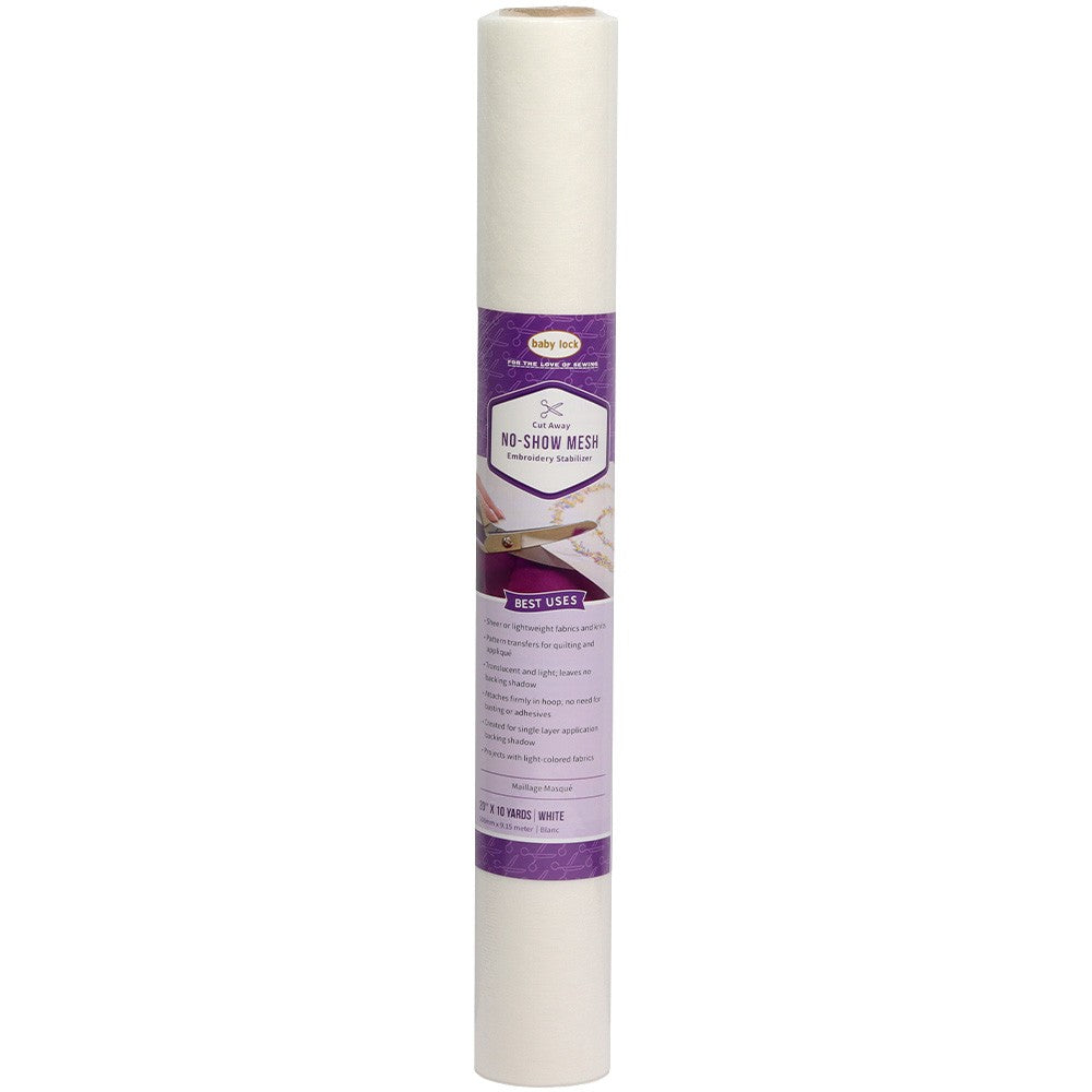 Babylock 1.5oz Medium Weight No-Show Fusible Mesh Stabilizer works best with medium-weight stretchy and woven fabrics. It is sheer enough to eliminate any backing shadow while still protecting skin from scratches. Mesh stabilizer is an excellent choice for collars and cuffs. Adhere it to your fabric with a dry iron, and then cut away the excess once you're finished embroidering. This roll is perfect for use on larger projects or with larger embroidery hoops.