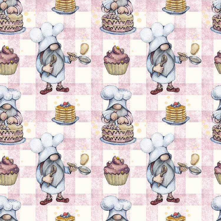 The Baker Gnomes on Plaid 1 Fabric is part of the Baker Gnomes Fabric Collection printed by Sew Creative Fabrics. Digitally Printed on 100% cotton.