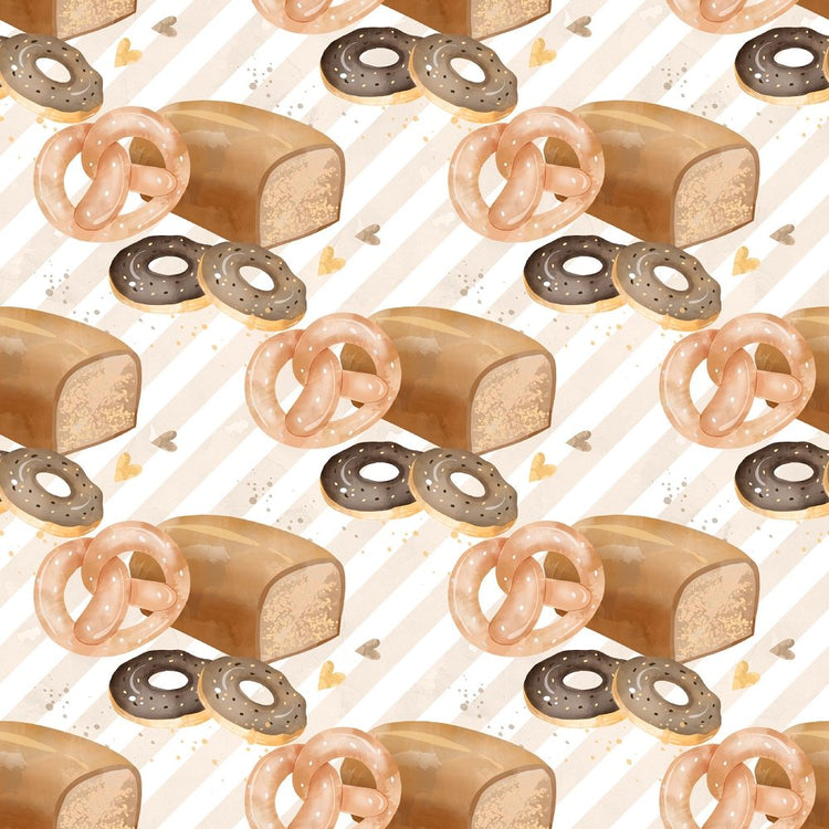 The Cream Bakery Desserts on Striped Fabric is part of the Beloved Bakery Fabric Collection printed by Sew Creative Fabrics. Digitally Printed on 100% cotton and measures 43-44" wide.