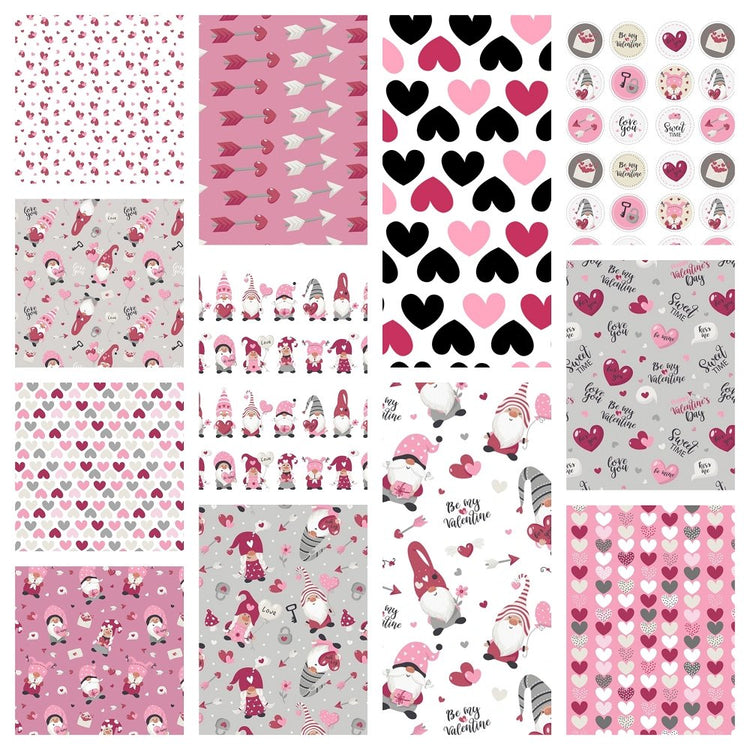 Be my Valentine Gnome Fabric Collection - 1 Yard Bundle