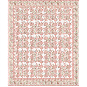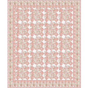 The Beautiful Ballerina Quilt Kit includes everything you need to make the quilt - the instructions, and a total of 11 1/2 yards of fabric for sashing, flange binding, and backing. Batting is sold separately. The finished size of this quilt is 64 1/2" x 77".