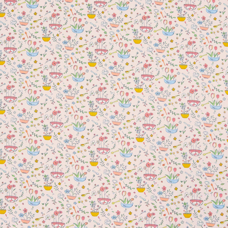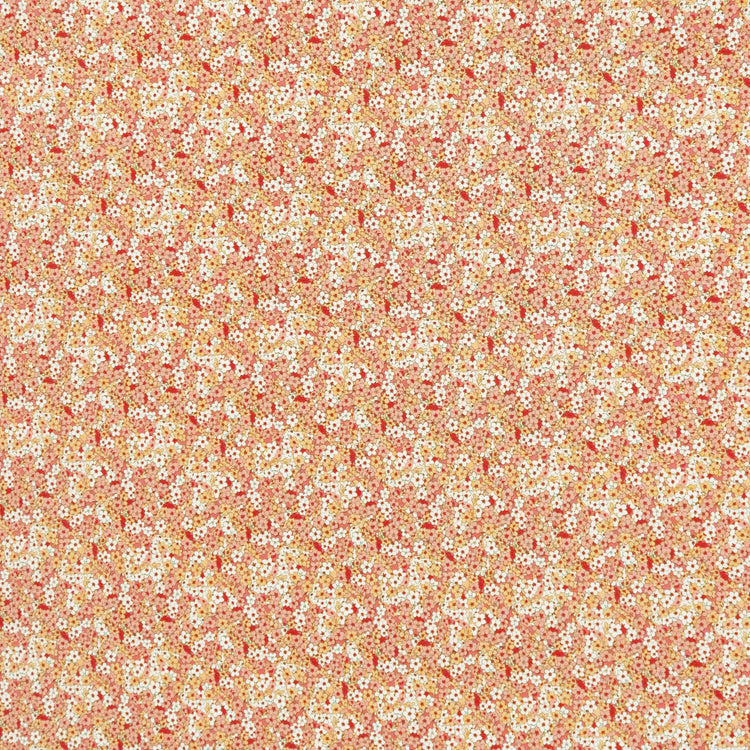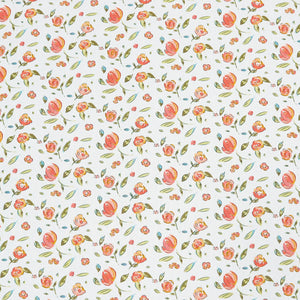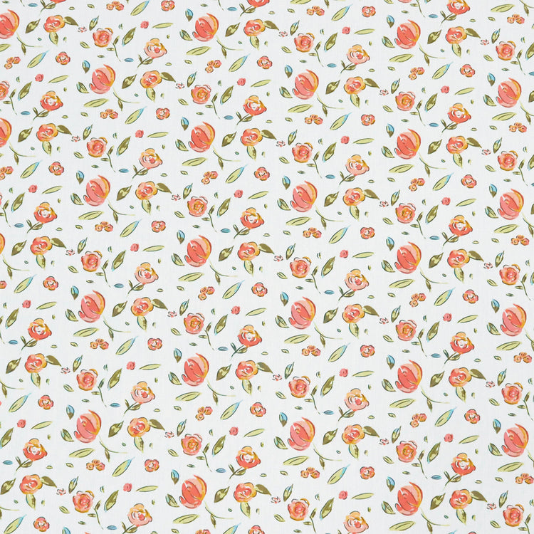 Sweet, delicate, and full of storybook charm, Little Briar Rose is a floral dream brought to life. This dainty print features hand-painted roses in warm coral, blush, and soft orange, scattered among leafy greens and hints of sky blue on a gentle cream background. The design feels light and breezy, making it a beautiful choice for everything from flowing dresses and children's apparel to quilt blocks and nursery décor. Its scale and softness lend just the right amount of vintage whimsy—perfect for projects that call for a touch of fairytale magic.