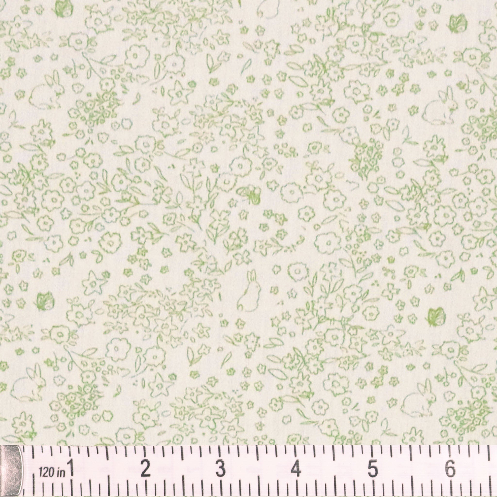 Soft and serene, Somebunny Fresh brings a delicate balance of texture and calm to any sewing project. Covered in a gentle scattering of fine-line florals and leafy vines in a soothing green hue, this subtle print adds a whisper of pattern without overwhelming your palette. It's a perfect blender for patchwork quilts, a dreamy background for embroidery, or a sweet, understated choice for soft toys and baby makes. Whether you're crafting a cuddly bunny, a nursery quilt, or a vintage-inspired garment, this print lends a peaceful, storybook elegance to every stitch.