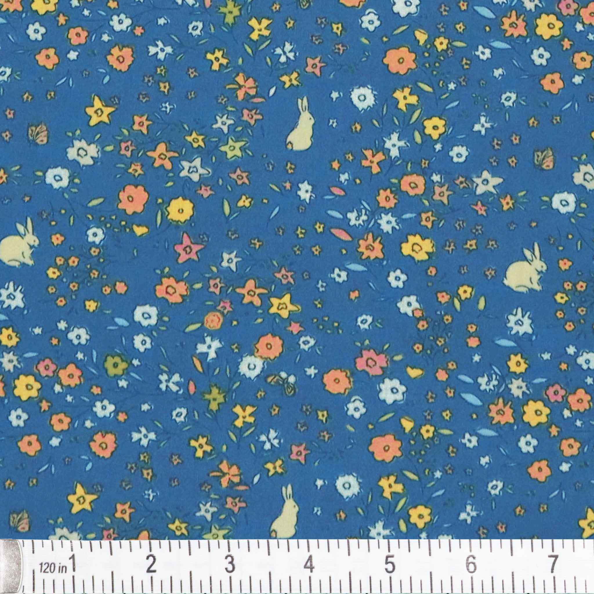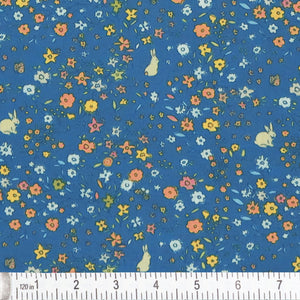 Bright, cheerful, and full of hidden charm, Somebunny Special is a delightful floral scatter print set against a rich cobalt blue backdrop. Tiny yellow, coral, and white blossoms are sprinkled throughout, along with playful stars and the occasional peekaboo bunny nestled between the petals. This fabric bursts with energy and whimsy—perfect for tote bags, quilts, toys, and accessories that need a pop of personality. It balances playful storytelling with timeless florals, making it a standout print whether used in full panels or fussy-cut for special details.
