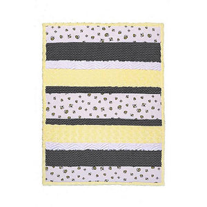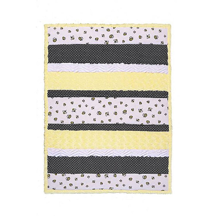 The Bambino Cuddle Kit Collection, from Shannon Fabrics, includes everything you need to complete an adorable baby blanket. Each kit includes a pattern and all the fabric needed to complete one 28in by 37in baby quilt. This kit from the Bambino Cuddle Kit Collection is called Bee Happy, and it features a black, yellow, and white color scheme. The Bee Happy Cuddle Kit includes five fabric strips, backing, and binding.
