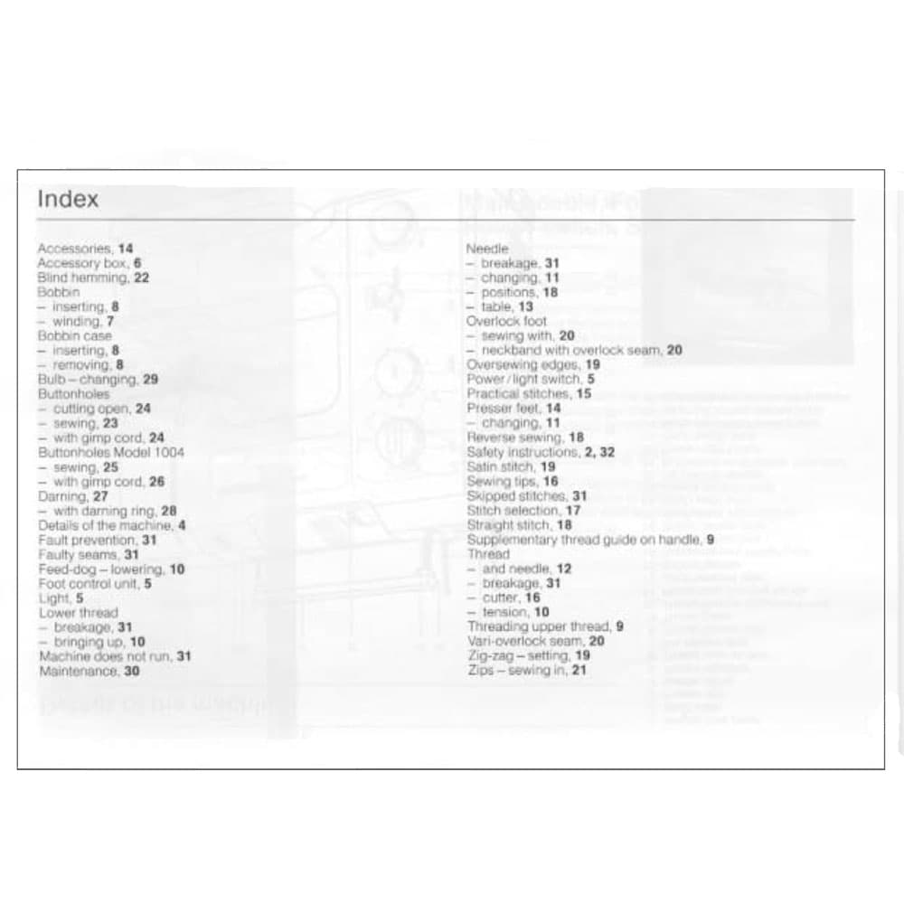 Bernina 1005 Sewing Machine Instruction Manual (Model 1005/1004) - 33 Pages. Lost your sewing machine's manual? We've got you covered! This instruction manual is the ultimate guide to unlock the full potential of your Bernina 1005. No more confusion or frustration—just clear, concise instructions right at your fingertips. What's inside? Everything you need to know from setting up to mastering your sewing machine and all its features.