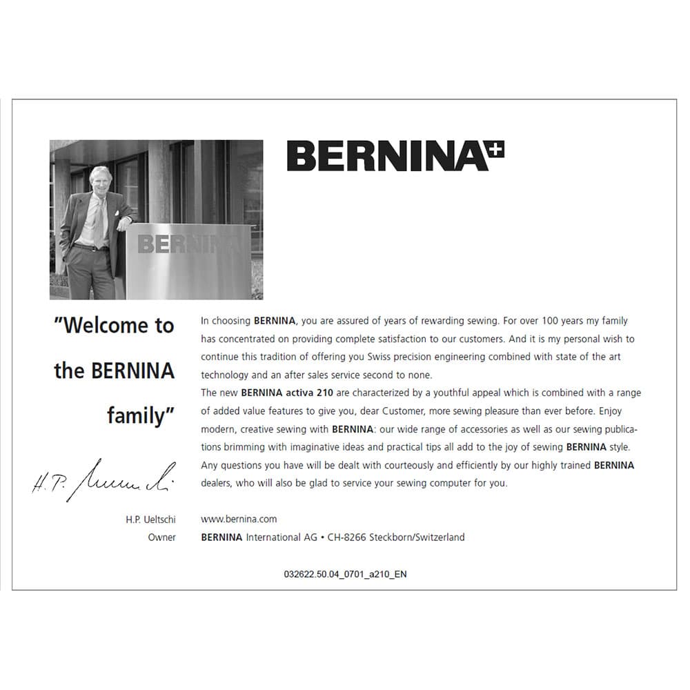 Bernina 210 Activa Sewing Machine Instruction Manual (Model 210) - 36 Pages. Lost your sewing machine's manual? We've got you covered! This instruction manual is the ultimate guide to unlock the full potential of your Bernina 210 Activa. No more confusion or frustration—just clear, concise instructions right at your fingertips. What's inside? Everything you need to know from setting up to mastering your sewing machine and all its features.