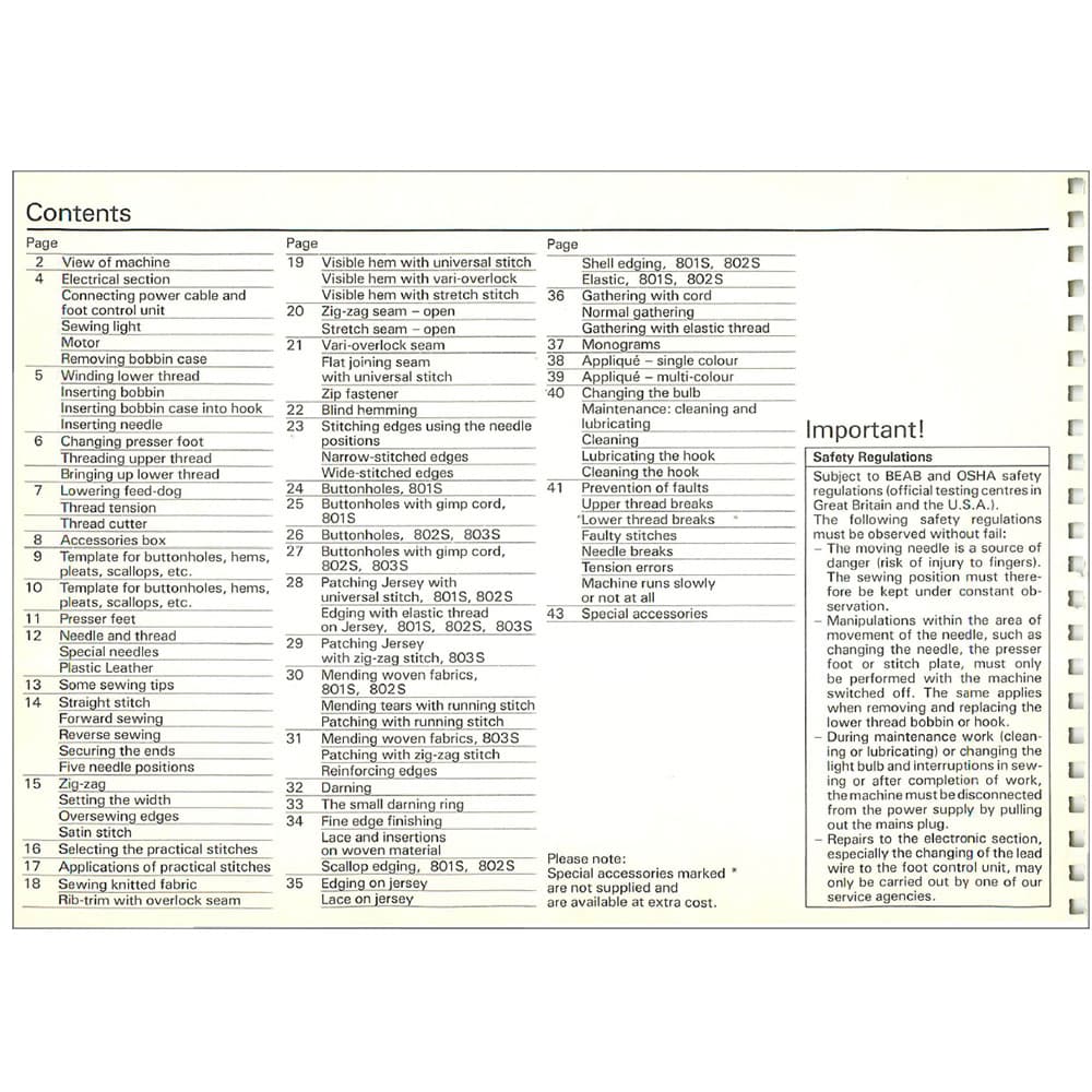 Bernina 801 Sport Sewing Machine Instruction Manual (Model 801/802/803) - 46 Pages. Lost your sewing machine's manual? We've got you covered! This instruction manual is the ultimate guide to unlock the full potential of your Bernina 801 Sport. No more confusion or frustration—just clear, concise instructions right at your fingertips. What's inside? Everything you need to know from setting up to mastering your sewing machine and all its features.