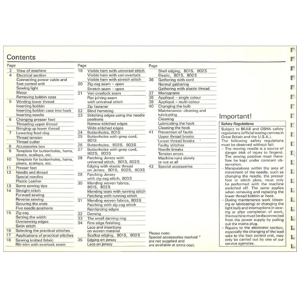 Bernina 802 Sport Sewing Machine Instruction Manual (Model 802/803/801) - 46 Pages. Lost your sewing machine's manual? We've got you covered! This instruction manual is the ultimate guide to unlock the full potential of your Bernina 802 Sport. No more confusion or frustration—just clear, concise instructions right at your fingertips. What's inside? Everything you need to know from setting up to mastering your sewing machine and all its features.