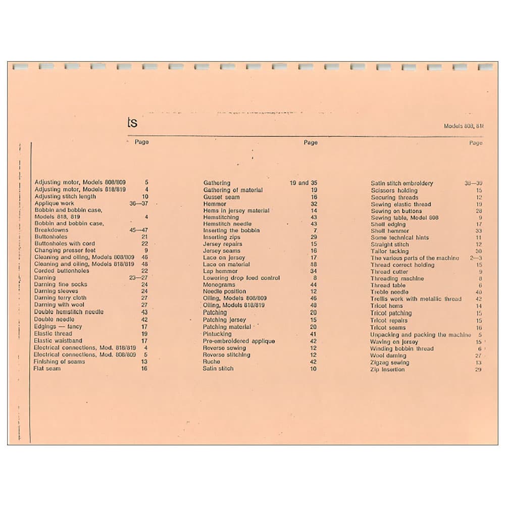 Bernina 809 Instruction Manual Details