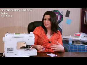 A large clear plastic darning high shank foot makes life easier by increasing the surface contact of your fabric. The visibility is much larger on this foot allowing you to see what you have sewn. Instructions are included.