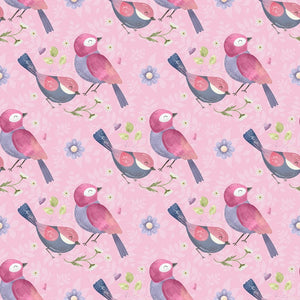 The Pink Birds & Flowers Fabric is part of the Birds of Beauty Fabric Collection printed by Sew Creative Fabrics. Digitally Printed on 100% cotton.